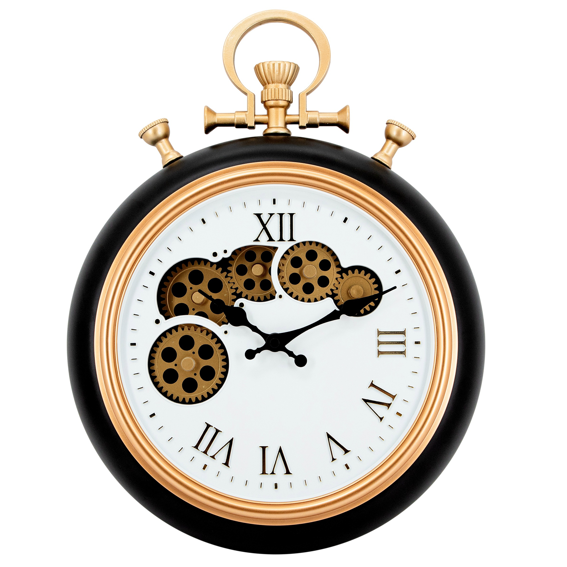 - Betoverende, bewegende tandwielen: De raderen in het open uurwerk draaien continu rond. Dit geeft een fascinerend, dynamisch effect aan je muur.